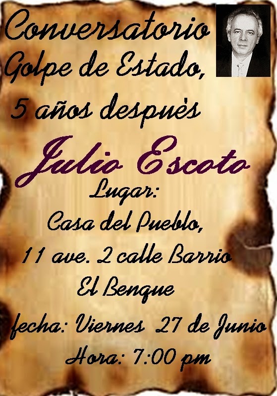 HONDURAS / San Pedro Sula: Fraterna invitación a nuestra actividad del viernes 27 de Junio y el tema El Golpe de Estado 5 años después