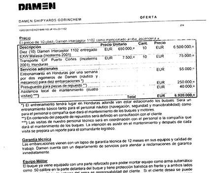 hondureño en febrero de 2011 para vender lanchas interceptors.