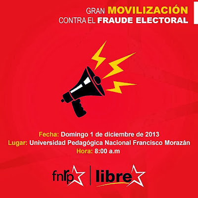 1.       El proceso electoral, está  diseñado para exaltar los datos de los partidos tradicionales y aun así no ha podido esconder la relevancia de los cientos de miles de compatriotas que se expresaron en las urnas a favor de la opción de LIBRE, (600 MIL hondureños), mientras se ha puesto nuevamente de manifiesto la poca  legitimidad y credibilidad que los partidos  tradicionales le dan  a su propio  sistema, con acusaciones de fraude en ambos partidos.