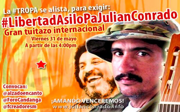 Organizan twitazo mundial para la libertad y asilo de Julián Conrado para hoy viernes 31 de mayo