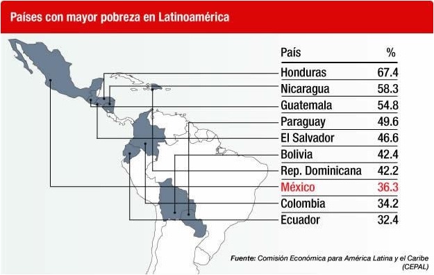 La Comisión Económica para América Latina y el Caribe (CEPAL) dio a conocer la lista de los 10 países más pobres de América Latina, proporcionando cifras actualizadas a 2011 sobre pobreza.