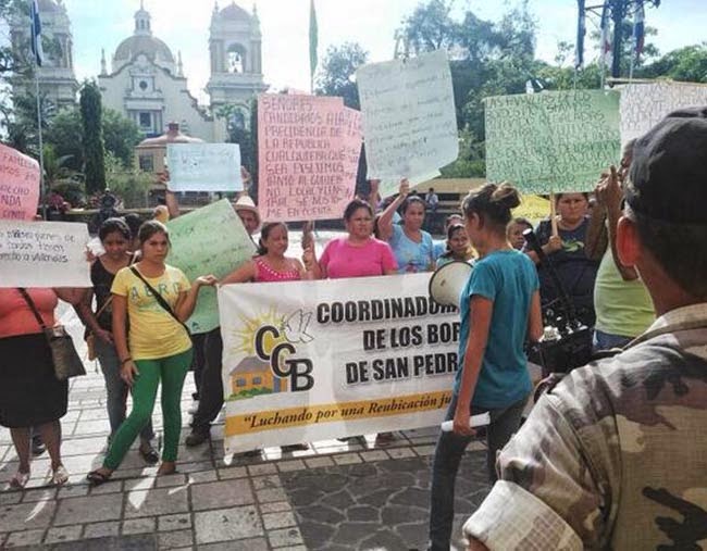 | Momento en que los manifestantes con sus pancartas reclamaban al edil sampedrano la tierra prometida.Tiempo.hn / San Pedro Sula,Honduras / Lunes, 30 Septiembre 2013 10:03. |