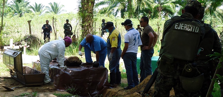en el sector del Bajo Aguán por un equipo de Medicina Forense, en medio