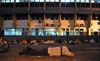 Entre el frío y los lamentos, por la adversidad, transcurren las noches y madrugadas en los alrededores del Hospital Escuela Universitario, ahora convertidos en un gigante “hotel” de los pobres.