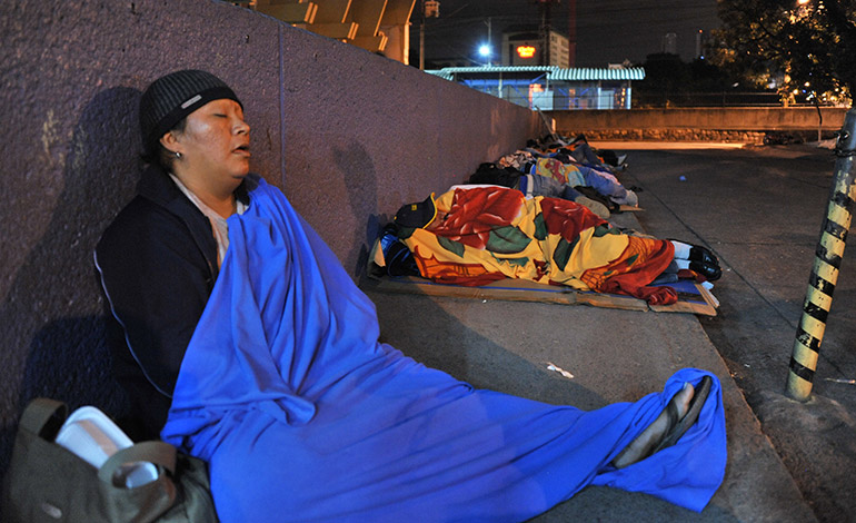Entre el frío y los lamentos, por la adversidad, transcurren las noches y madrugadas en los alrededores del Hospital Escuela Universitario, ahora convertidos en un gigante “hotel” de los pobres.