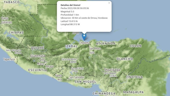 en Guatemala y Belice.- El Benemérito Cuerpo de Bomberos reportó un sismo de magnitud 5.0 en la escala sismológica de Richter registrado a 30 kilómetros al oeste del municipio de Omoa, departamento de Cortés.