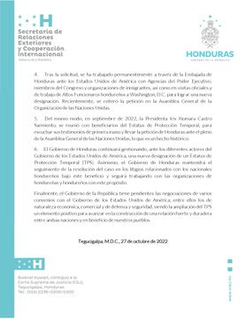 No obstante, y pese a la resolución desfavorable, el Gobierno de Honduras “continuará gestionando”, ante los diferentes actores del Gobierno de los Estados Unidos, una nueva designación de un TPS.