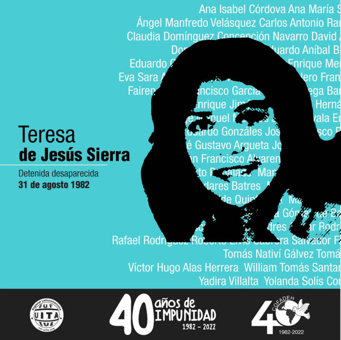 Lurbyn Elaine Alvarenga, hija de Teresa de Jesús Sierra, pasaba por la Plaza de los Desaparecidos/Plaza la Merced en el centro de Tegucigalpa un primer viernes de mes, cuando el Comité de Familiares de Detenidos Desaparecidos en Honduras (COFADEH), realizaba su tradicional plantón, y al ver la foto de su madre plasmada en una manta, recordó su lucha y por qué fue desaparecida.