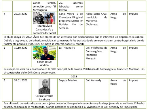 Desde el año 2001, el Conadeh registró una serie de hechos violatorios a la libertad de expresión que van desde amenazas, agresiones, atentados, desplazamiento forzado y la muerte de casi un centenar de personas vinculadas a medios de comunicación en circunstancias violentas e impunes en más del 90 por ciento de los casos. GO/Hondudiario