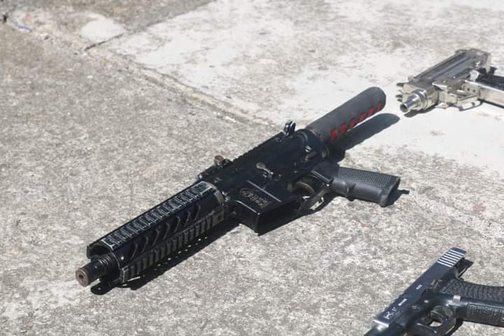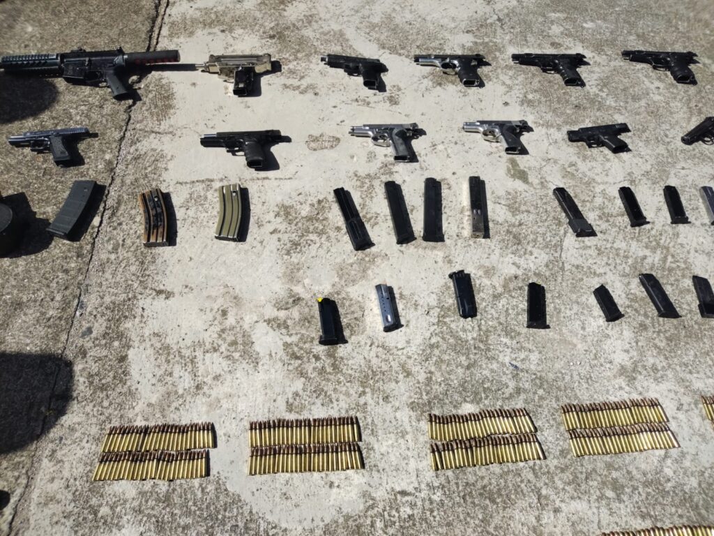 Luego de un par de horas las fuerzas de seguridad del Estado dieron a conocer mediante fotos y videos acciones de aseguramiento de armas, municiones y hasta granadas de fragmentación.