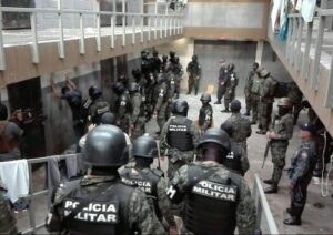 Cuando se ve a militares y policías, la referencia que se tiene es que habrá represión en contra del pueblo, explicó Ríos y añadió que lo cierto es que los militares no han pagado las violaciones a los derechos humanos cometidas desde hace 40 años y hasta en el presente.