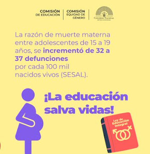 La ley busca promover y garantizar «la enseñanza de la educación integral de prevención al embarazo adolescente basada en un enfoque de derechos» en todas las modalidades del sistema educativo público y privado, defendió una de las impulsoras de la norma la vicepresidenta del Parlamento, Scherly Arriaga.