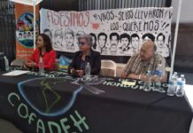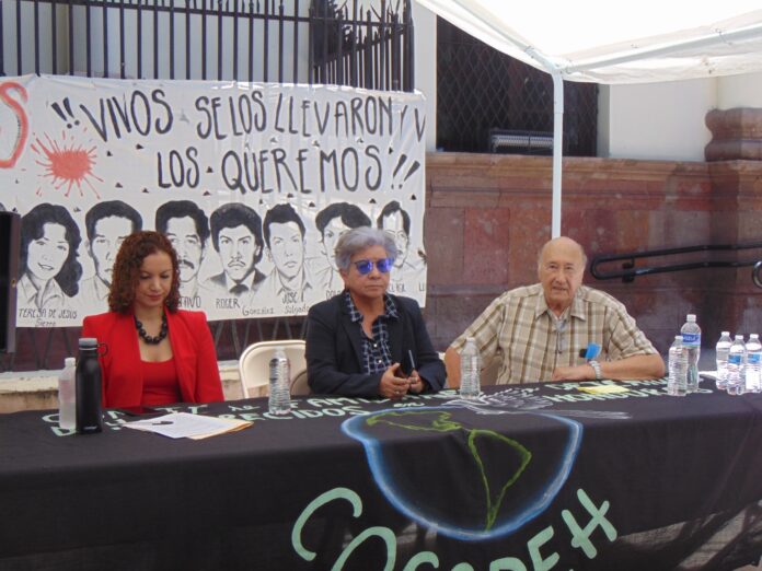 En el acto, que se desarrolló en La Plaza de los Desaparecidos o Parque La Merced, donde cada primer viernes de mes los familiares de los desaparecidos y desaparecidas realizan su tradicional plantón de exigencia de verdad y justicia, participaron la coordinadora general del COFADEH, Berta Oliva; la ministra de la Secretaría de los Derechos Humanos, Natalie Roque, y el líder social y miembro de la coordinación nacional de la Convergencia Contra el Continuismo, Carlos H Reyes.