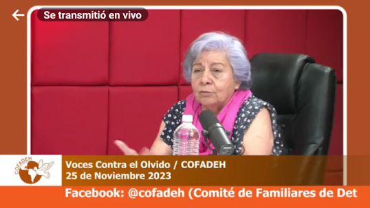 “A COFADEH nos ha tocado sentir desde esta lucha que caemos, sentir que nos cansamos pero nunca nos hemos vencido. Yo creo que en estos 41 años hemos hecho tantas cosas y sobre todo hemos conocido gente tan importante, tan determinante, que cada vez que oímos sus participaciones nos energiza y nos hace sentir que no estamos ni solas ni locas”, resaltó.