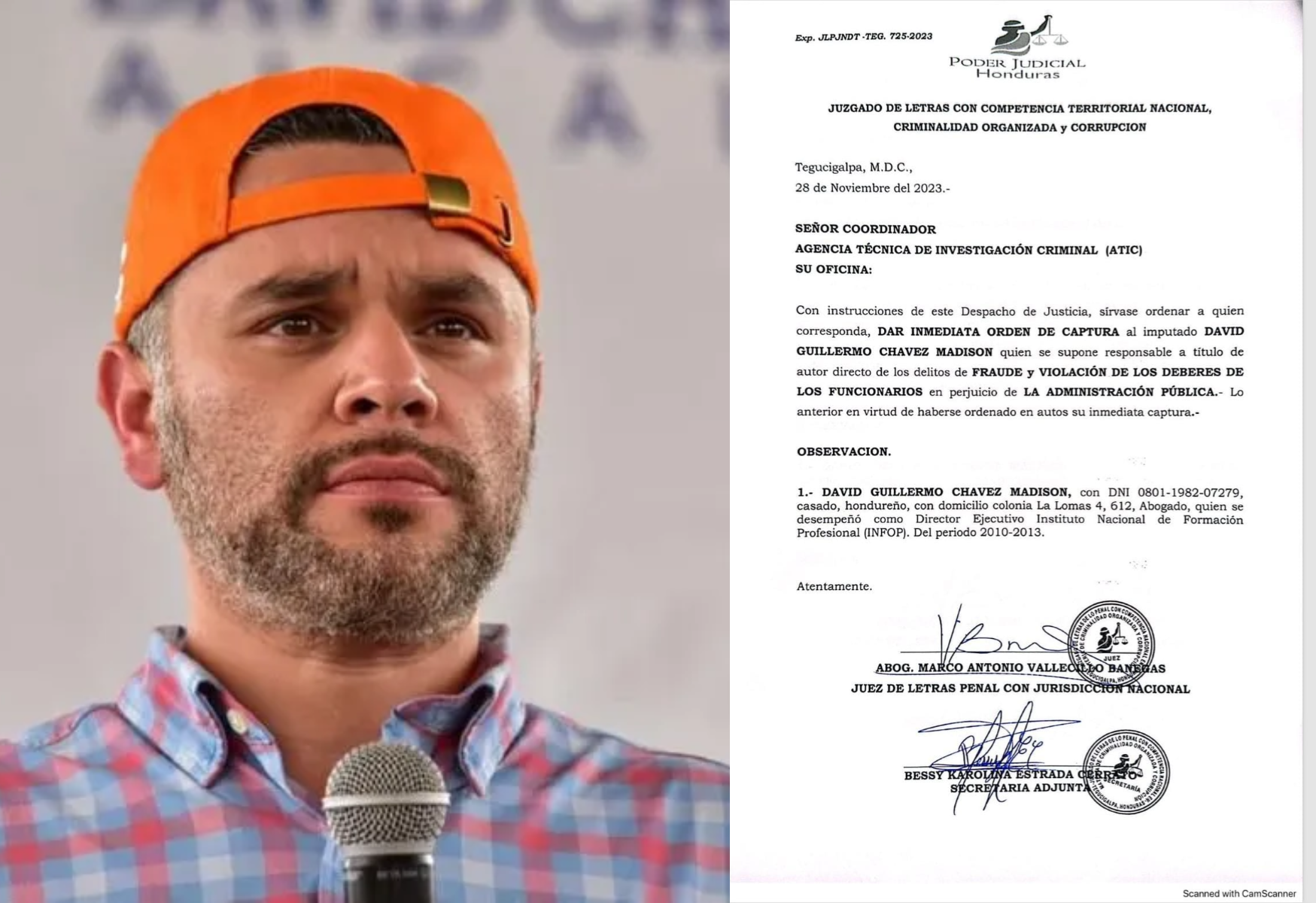*** Chávez intentó salir del país en la madrugada de este martes. Un juez emitió orden de captura contra el presidente del Partido Nacional, David Chávez Madison, por los delitos de fraude y violación a los deberes de los funcionarios, mientras fungió como director del INFOP (2010-2013).