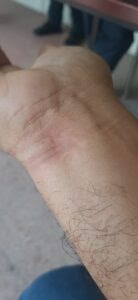 El defensor Leonel George presenta daños en las muñecas de las manos, debido a que los agentes que lo detuvieron le socaron las esposas.