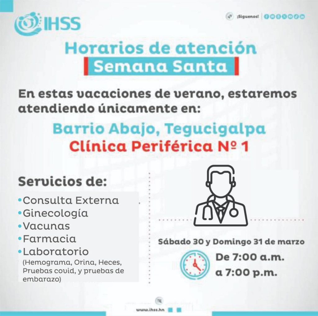 Tanto el Hospital de Especialidades ubicado en el barrio Abajo de la capital, como el Hospital Regional del Norte en San Pedro Sula, están brindando atención a los derechohabientes que acuden en busca de asistencia médica, afirmó.