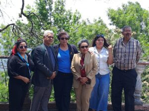 Los ganadores del primer concurso literario “Resistencia y Refundación del Estado” posan con la ministra de la Secapph, Annarella Vélez, y la coordinadora general del Cofadeh, Berta Oliva.