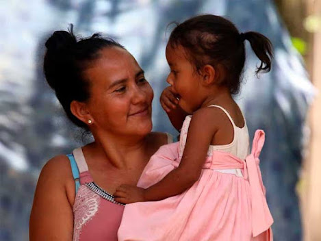 Una mujer de la etnia Tolupán sostiene una niña el 4 de junio de 2021 en San Francisco de Locomapa (Honduras). EFE/Germán Reyes